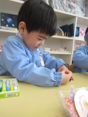 1学期の頃よりも自分の力で、折り紙を折ったり、クレヨンで顔を描くことがたくさんできるようになりました✨