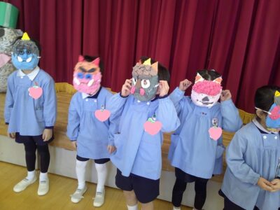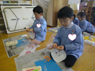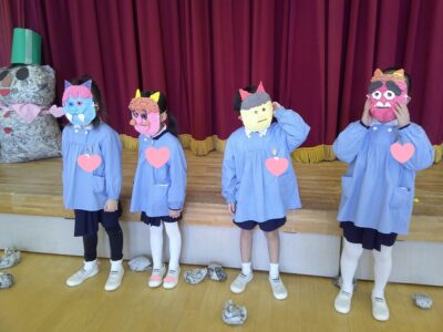 子ども達も、自分で作ったお面に愛着を持ちながら、楽しく過ごすことができました♪