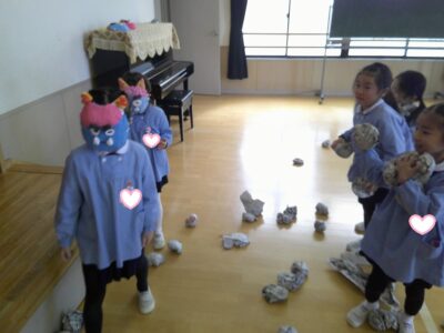 しっかりと乾かしてから、2月3日にみんなで豆まきをしました!