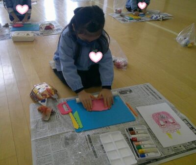 手がいろんな色になって大変でしたが、一生懸命に頑張っていました!